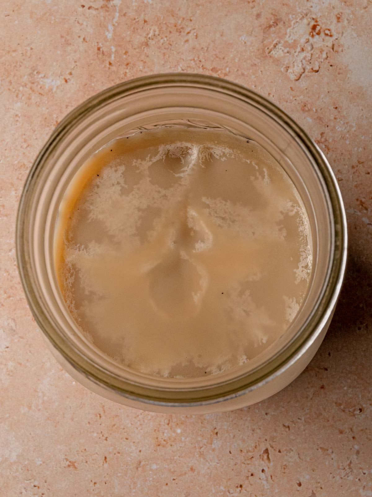- Pour the liquid through a fine mesh strainer or cheesecloth into a heatproof jar to strain out any sediment.